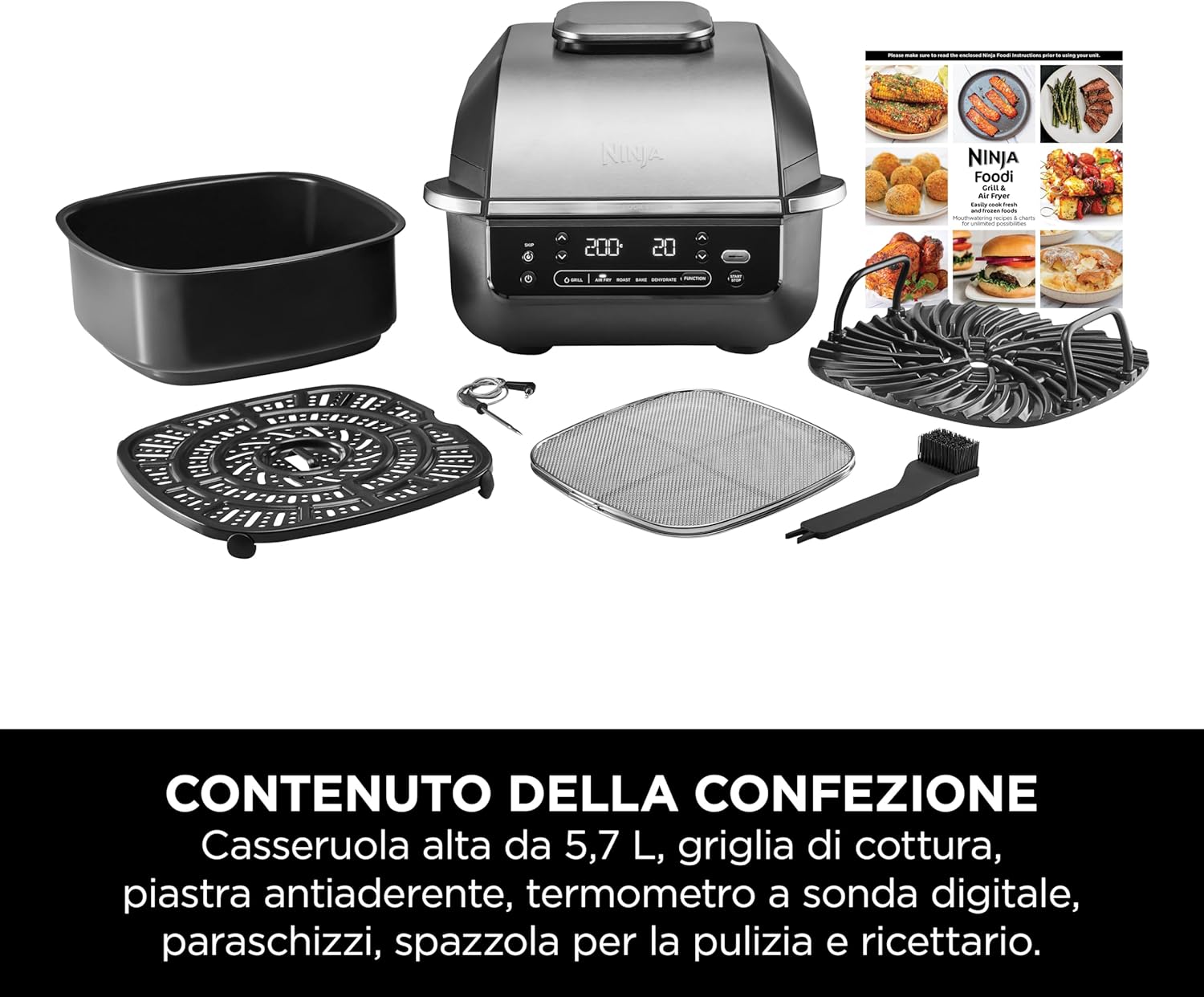Scopri Ninja Griglia e Friggitrice ad Aria 5 in 1: 5 funzioni di cottura per piatti croccanti e gustosi in meno tempo e con meno grassi